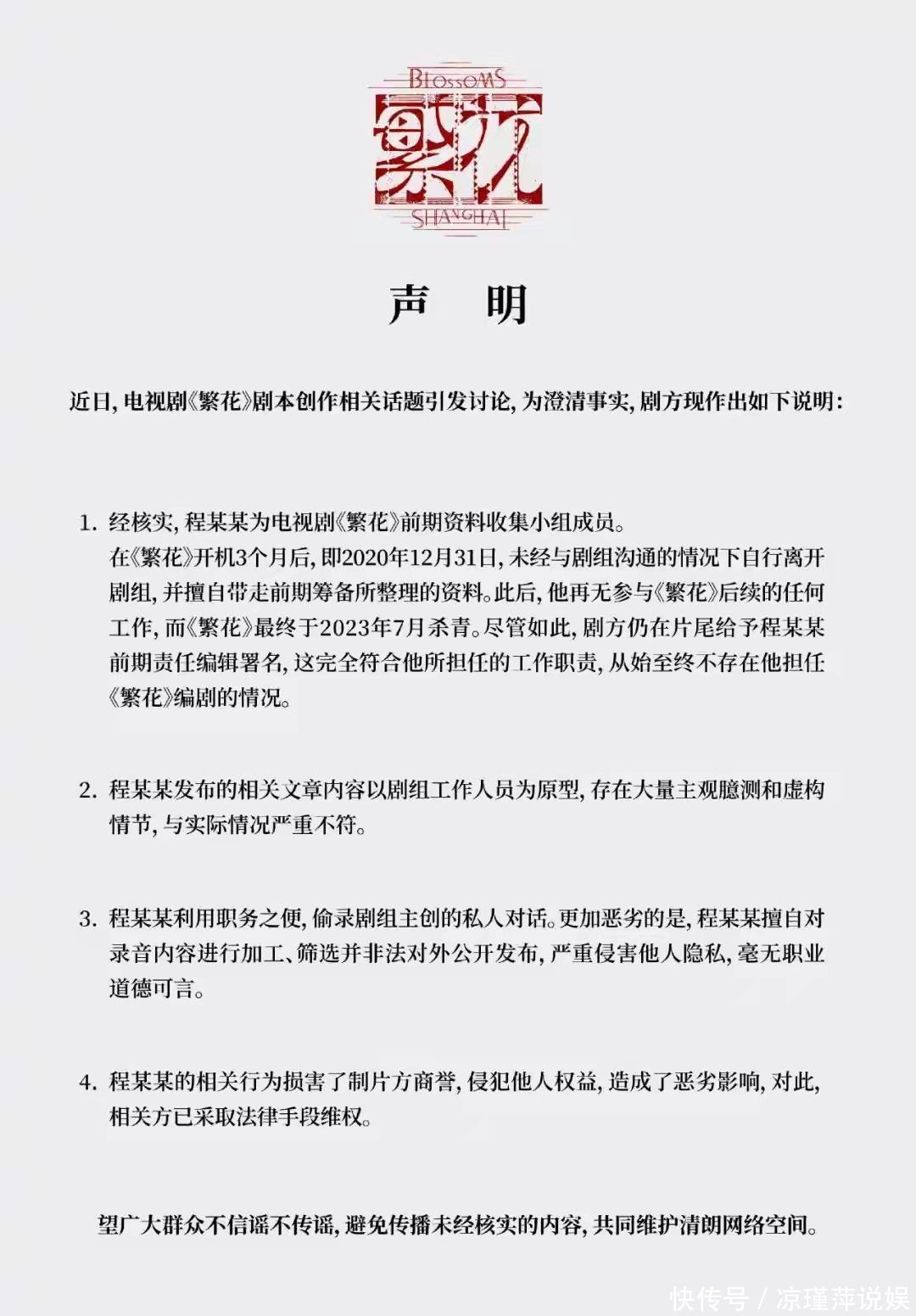 这场风波始于10月31日,编剧古二再曝录音。内容里王家卫说唐嫣“很装”,相关话题接连霸榜。古二自去年起就控诉《繁花》剧组,称自己写了三年剧本却无署名,仅是生活助理。剧组回应称他只是前期资料收集员,擅自离职还偷录加工录音,已采取法律手段。